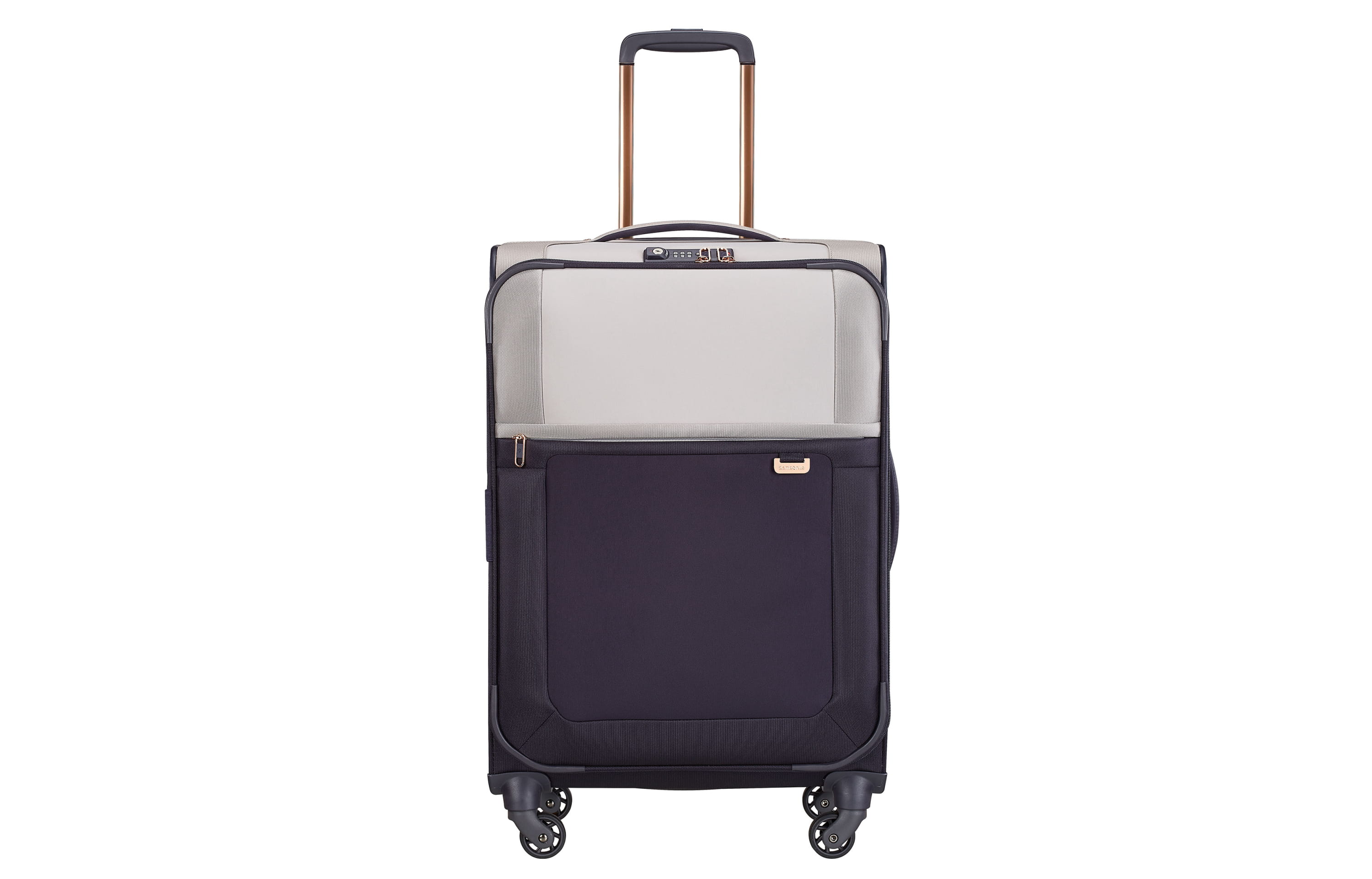 Leader mondial, la marque américaine née en 1910 vend un bagage toutes les 90 secondes. L’Uplite, formaté cabine, est l’un des plus courus, avec rangements organisés, poignées confortables et serrure homologuée TSA (la douane américaine possède donc le passe). On glisse aussi des documents dans la pochette sur le côté. Notez son poids plume, appréciable quand on le porte à bout de bras (1,6 kg pour 50 cm) et ce nouveau coloris : perle-bleu, assorti de détails cuivrés et poudrés.