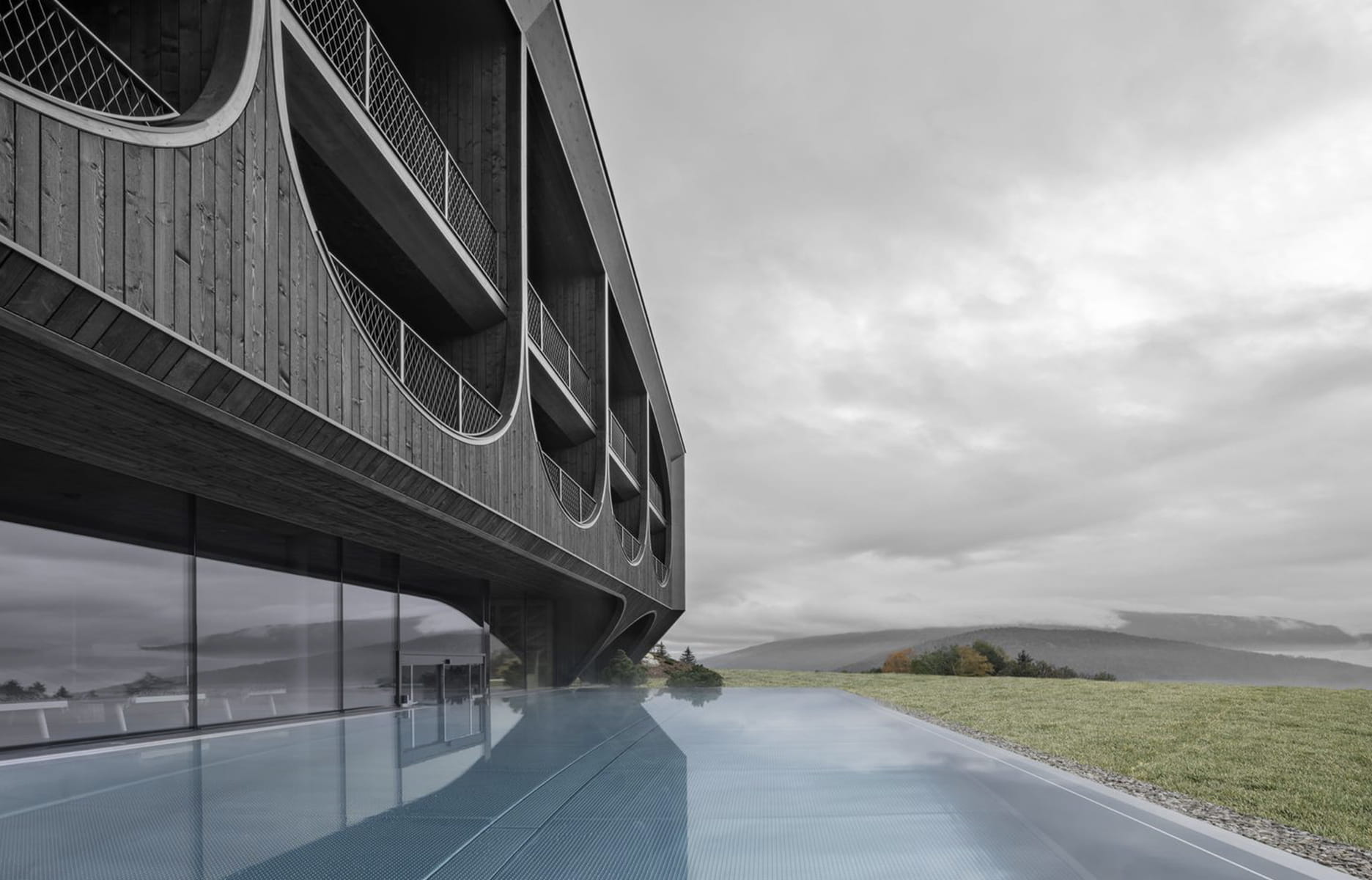 Milla Montis, Maranza. Le studio milanais Peter Pichler Architecture vient d’inaugurer sa dernière création : Milla Montis, un hôtel graphique à Maranza (Sud-Tyrol), dans le nord de l’Italie. Dans ce petit village connu pour ses sentiers de randonnée, l’hôtel abrite 30 chambres, un bar, un restaurant et un spa. Certaines suites sont équipées d’un sauna privé. Toutes les parties communes et les meilleures chambres offrent une vue spectaculaire sur les Dolomites. À l’intérieur, la décoration est minimaliste et se fait discrète : les stars, ce sont les montagnes. Les meubles ont été créés sur mesure, à l’exception de certaines chaises typiques de la région. Quelques (infimes) touches de couleurs minérales, principalement du vert, épicent le tout. Cerise sur le gâteau, une immense piscine extérieure se fond dans le décor. J. C.
