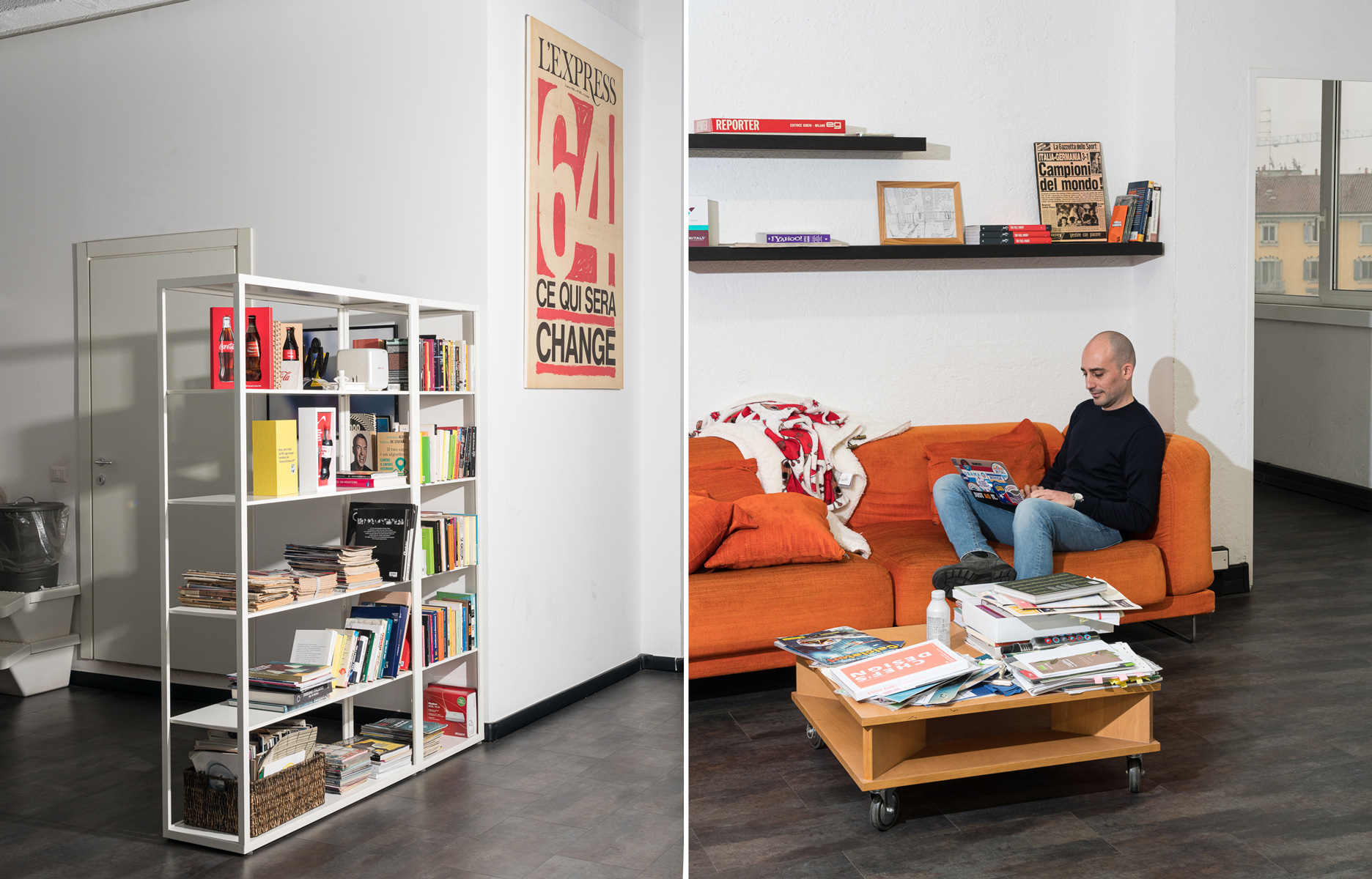 Au cœur du quartier très branché de Porta Genova, haut lieu de la mode et du design milanais, via Tortona, l’open space blanc et désert tient plus du showroom en attente d’événement que d’une salle de rédaction. Oubliés sur les bureaux désormais vides de tout ordinateur, quelques packs intacts de canettes de Red Bull et de Coca-Cola témoignent pourtant de l’effervescence qui, d’ordinaire, règne ici. Mais aujourd’hui, mesures sanitaires et distanciation physique obligent, seuls le rédacteur en chef d’ Il Post et son bras droit nous accueillent dans ce journal étrangement silencieux et sans journalistes.