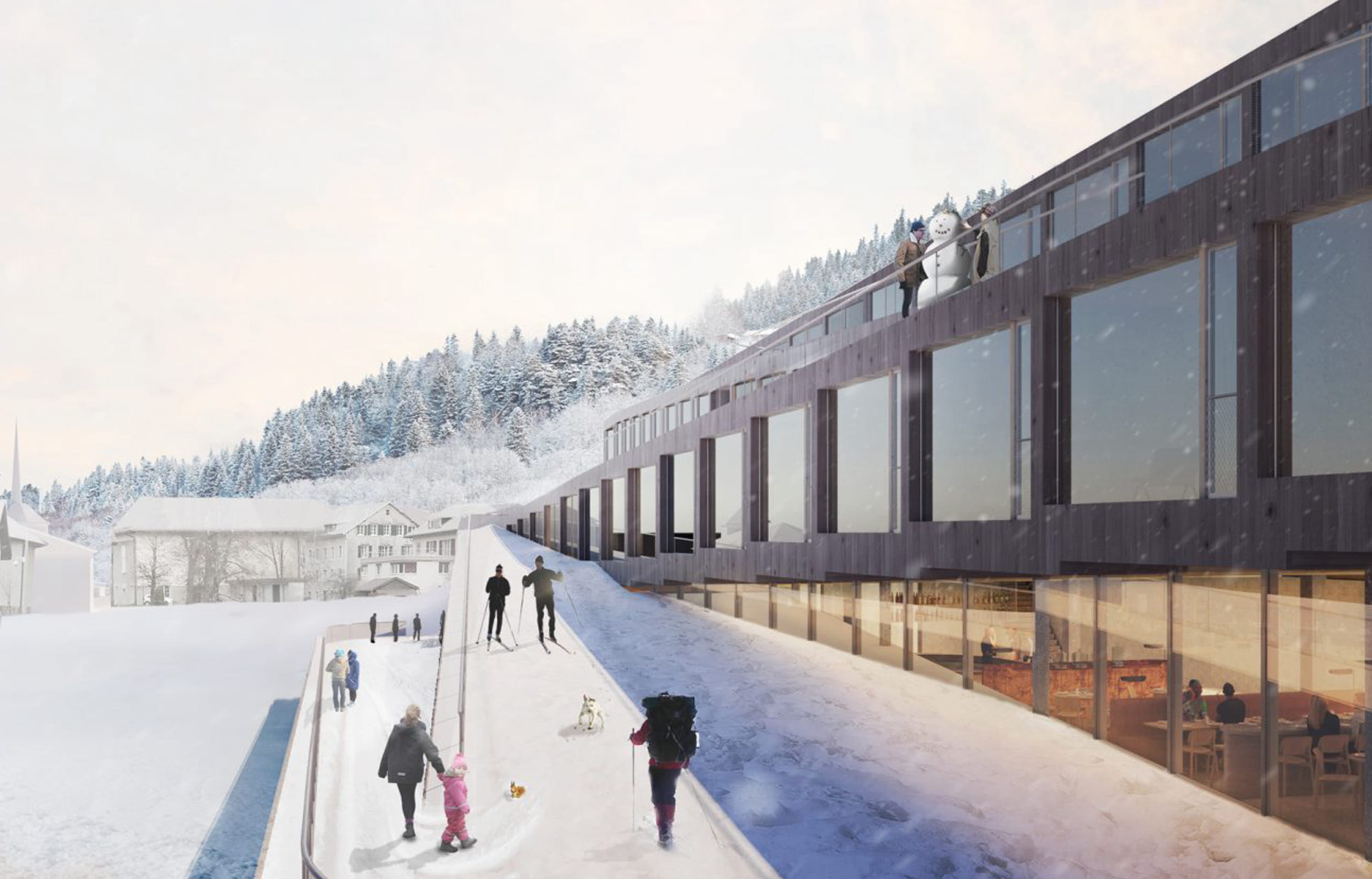 En été, les pistes deviendront des terrasses qui relient les cinq étages de l’hôtel entre eux. Amusant. La construction devrait débuter au début de l’automne et l’inauguration est prévue pour 2020.