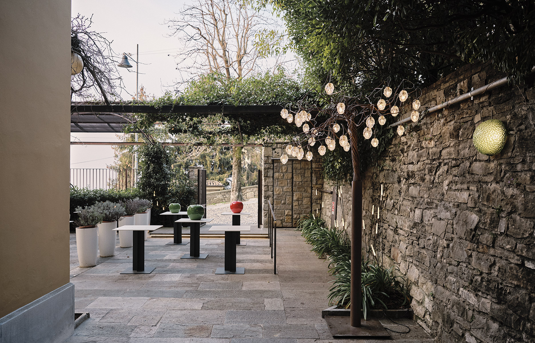 Surplombant la Città Alta, cette maison idéalement située développe une hospitalité contemporaine, dont l’un des attraits est l’excellent travail sur les lumières. Et pour cause, la célèbre marque Catellani & Smith a donné ici une idée de son travail. Pour l’anecdote : Smith n’est pas le partenaire d’Enzo Catellani, mais le nom de… son cheval.