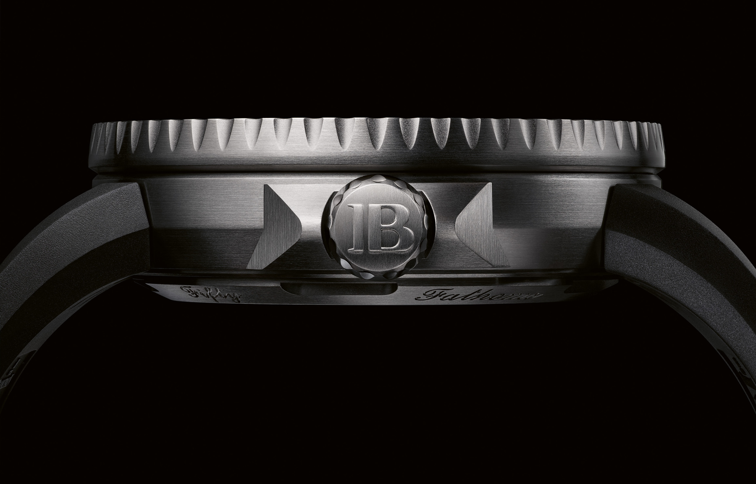 L’ensemble permet pour la première fois de mesurer un temps d’immersion jusqu’à trois heures grâce à la quatrième aiguille centrale, dont la matière et la teinte, un revêtement luminescent blanc à émission verte, sont assorties à celle des repères de la lunette. Le boîtier de 47 mm, étanche à 300 mètres, est réalisé en titane grade 23 (le plus pur), ce qui lui confère endurance et légèreté et une bonne résistance à la corrosion.