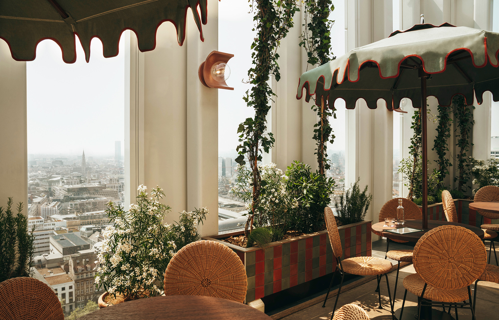 Il en fallait du cran pour s’installer aux abords de la gare du Nord de la capitale belge. En chemin pour le nouveau Hoxton, on fait rouler notre valise sur des trottoirs décharnés, sur du bitume explosé, on zigzague autour des buveurs de bière déjà bruyamment à l’apéro. Le paysage s’éclaircit en s’approchant de The Hoxton Brussels, qui occupe un ancien hôtel de police. Face à lui, d’autres tours vertigineuses (son désormais classique rooftop bar culmine au 22e étage) et un poumon vert, le jardin botanique.