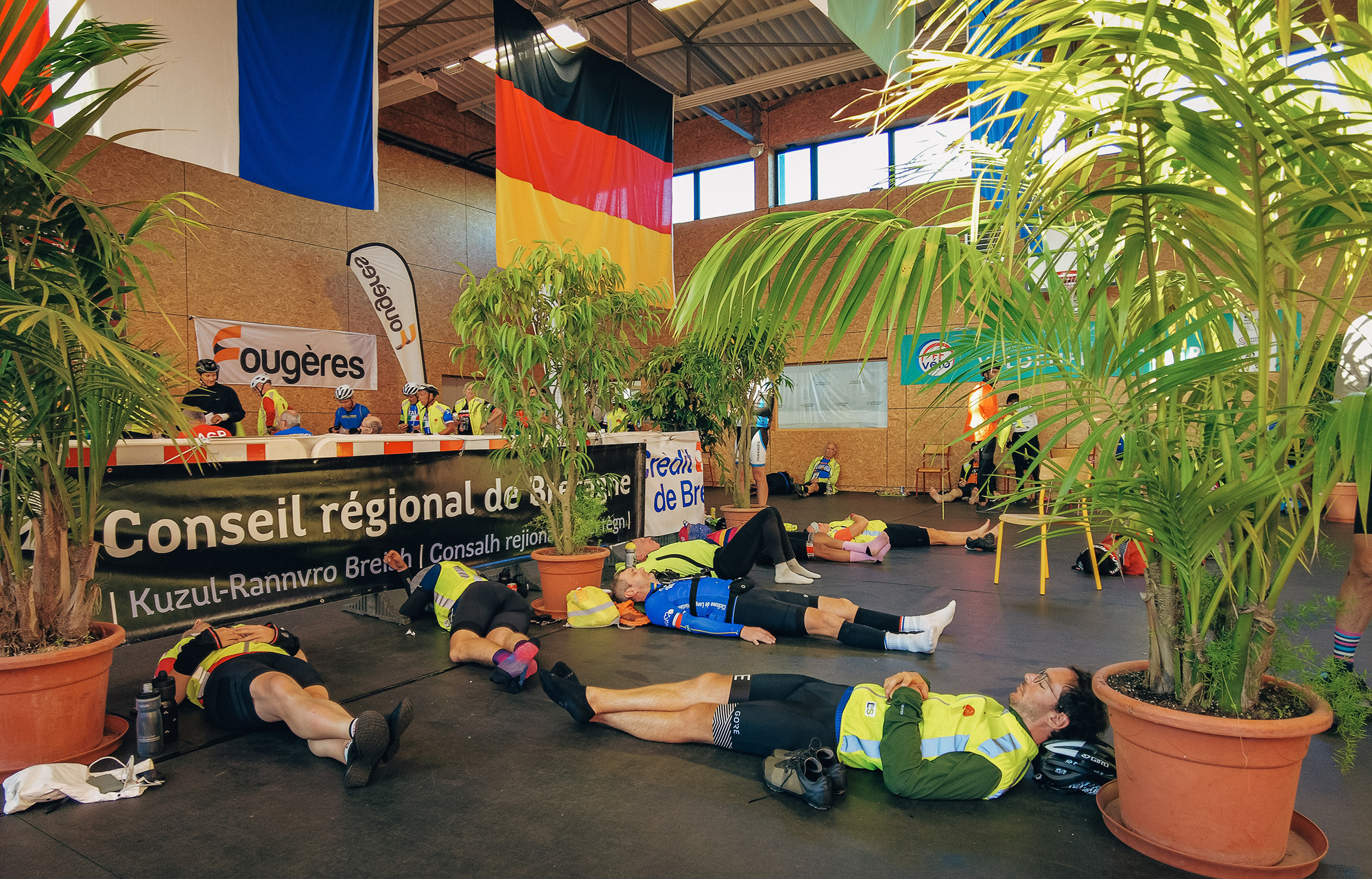 « J’ai fait l’opposé de ce qui était recommandé ! J’ai embarqué tout le nécessaire à mon confort sur mon vélo : un duvet, un petit matelas… Je préfère prendre le temps de m’installer pour bien dormir pour une petite heure plutôt que faire une mauvaise sieste dans une salle comble de monde. J’ai dû dormir moins de sept heures en tout sur trois jours de course« , explique Sybille. Si les coureurs s’organisent donc selon leur bon vouloir, la quinzaine de checkpoints situés tout au long du parcours permettent néanmoins aux cyclistes de se reposer, de manger et de se réapprovisionner en nourriture et en matériel. Car la condition physique est une clé de l’épreuve. Cette année, près de 25% des partants ont abandonné avant la fin pour cause d’épuisement.