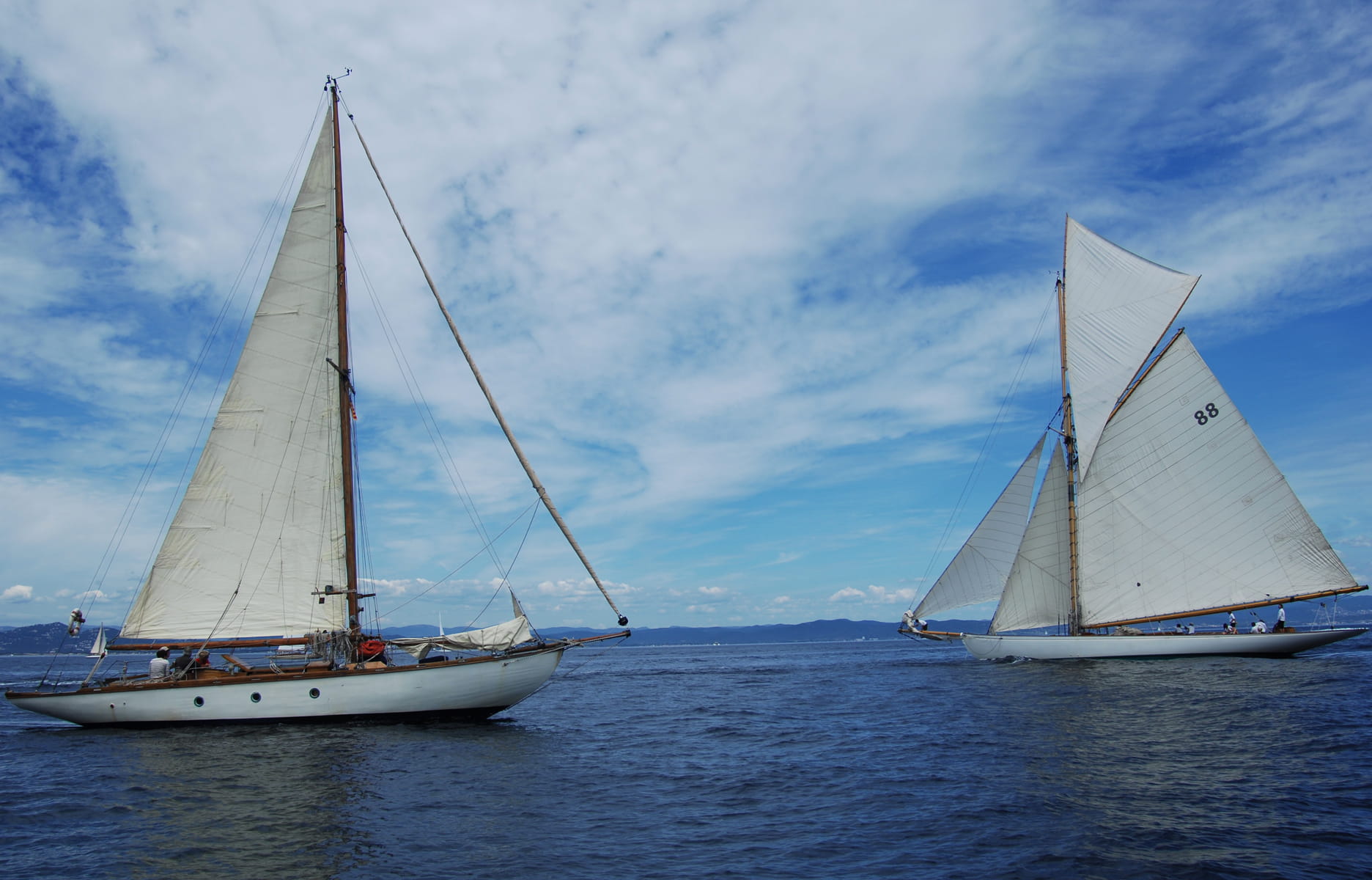 L’America’s Cup reste « la » course à la voile contemporaine préférée des horlogers. « Il faut dire que le spectacle de ces bateaux ultraperformants est particulièrement extraordinaire, et que cette compétition génère des retombées médiatiques colossales », rappelle Angelo Bonati. Ces « machines de guerre » sont pourtant moins chaleureuses que les navires anciens aux ponts de teck, à l’accastillage en laiton et à l’atmosphère chic et conviviale. Le soir après la course, VIP, marins et skippers se retrouvent à la capitainerie, coupe de champagne à la main et beaux vêtements sur le dos.