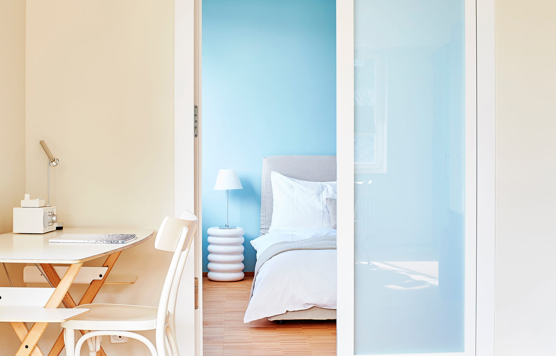 • Greulich, serein. C’est la perle confidentielle du « quartier rouge », lequel ne sent plus du tout le stupre, mais plutôt le bois blond et le chaï latte. En témoigne cet hôtel un peu Bauhaus, peinturluré d’outremer, où l’on se revigore le corps à coups de séances de yoga, où l’on se régénère l’esprit dans le bosquet de bouleaux, zen au possible, que le paysagiste Günther Vogt a plantés dans la cour, et où l’on festoie – on n’est pas des moines – dans le salon-bar du rez-de-chaussée autour d’une Frau Herman, boisson divine à base de Lillet, de prosecco et de canneberges. Pour ne rien gâcher, les chambres aux notes pâles laissent place nette à la lumière du dehors.